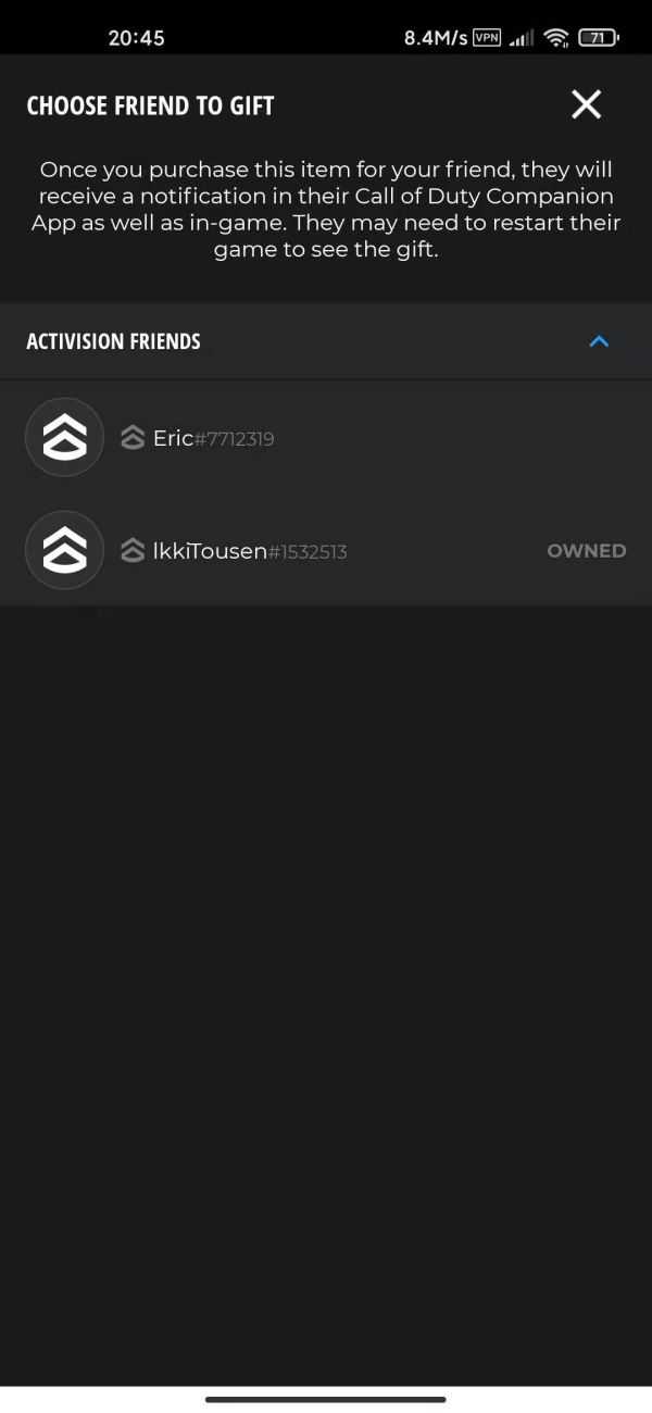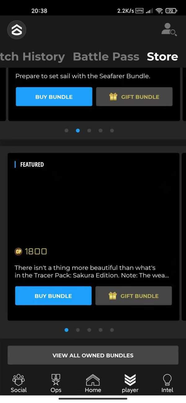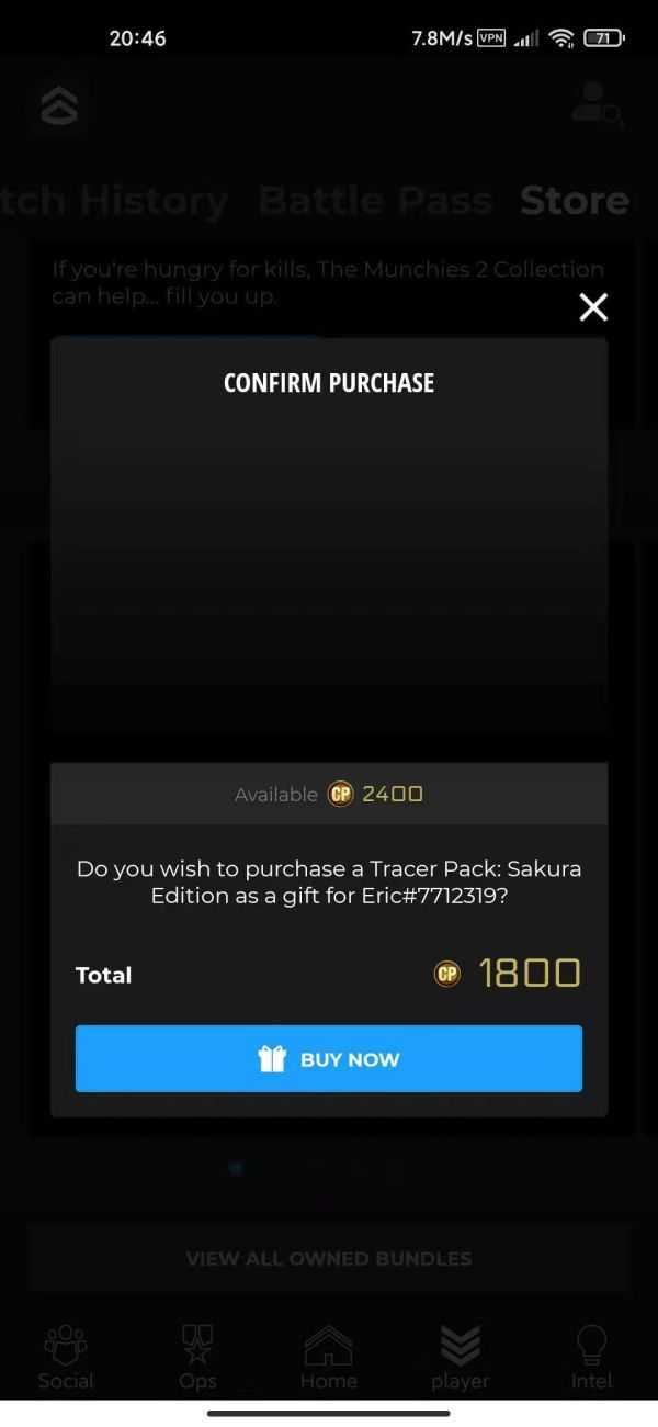 在FEATURED(精选)这里选择1800CP近日上架的樱花组合包,APP网络不太理想有时候图片加载不出来,这里的顺序跟COD商城里是一样的,如果图片没加载出来,自己看一下知道是哪个就可以。确定好要送的组合包,点GIFT BUNDLE然后跳转到选择送出好友界面。