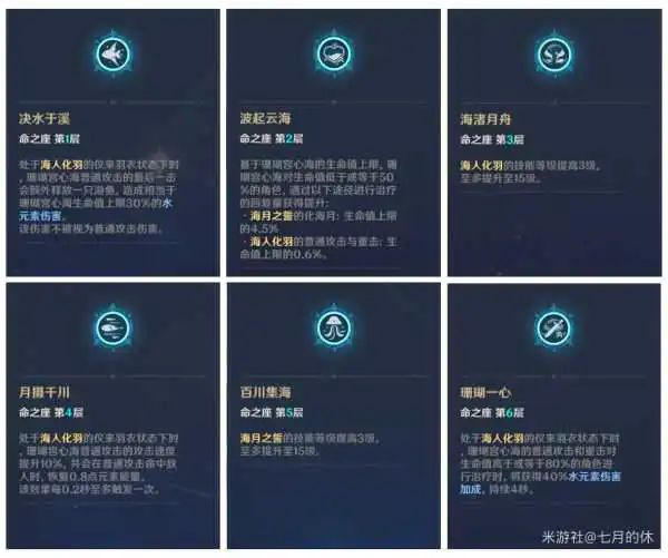 心海的主要命座1/4/6命,为输出命座,2命是治疗命座。