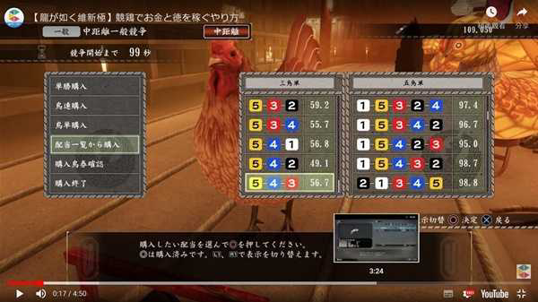一、先通关到第三章就能前往养鸡场进行赛鸡,到达店前时先实时存档,接下进去后将手上的钱都换成筹码