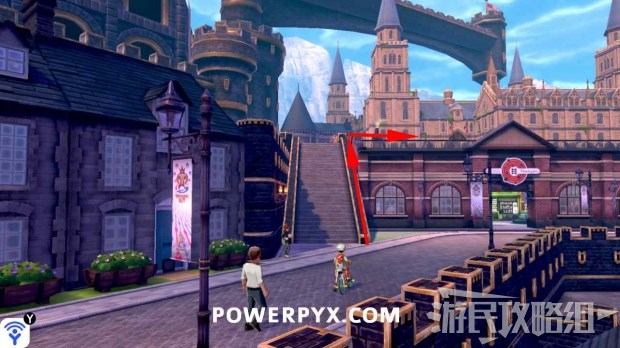 首先,从拳关市的宝可梦中心向右行进,走上下图2的阶梯,房屋门前站着一个小女孩(宝拉)。她问你是否可以帮她把情书送给一个男孩,这里请接受她的要求。