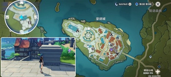 4.西风骑士团锚点朝小地图南方向(西风骑士团楼顶)
