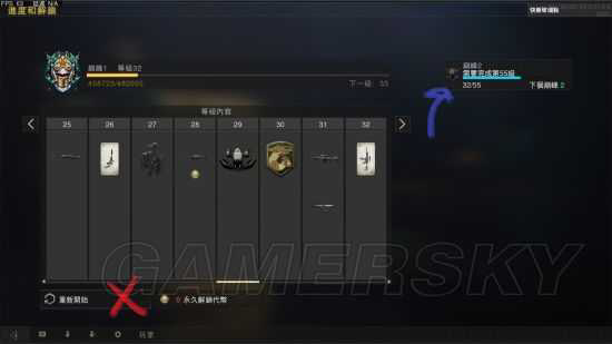 玩家→军营→进度和解锁→点选右上角使用巅峰,千万不要按到左下角重新开始。