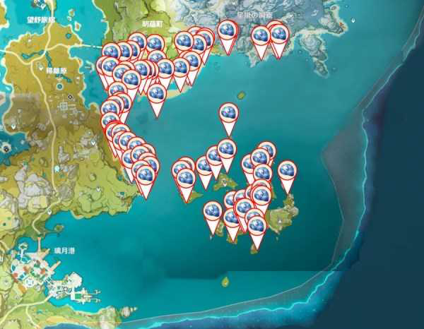 星螺可以在璃月的海边收集,也可以从璃月港购买(1000摩拉),地图分布如下。