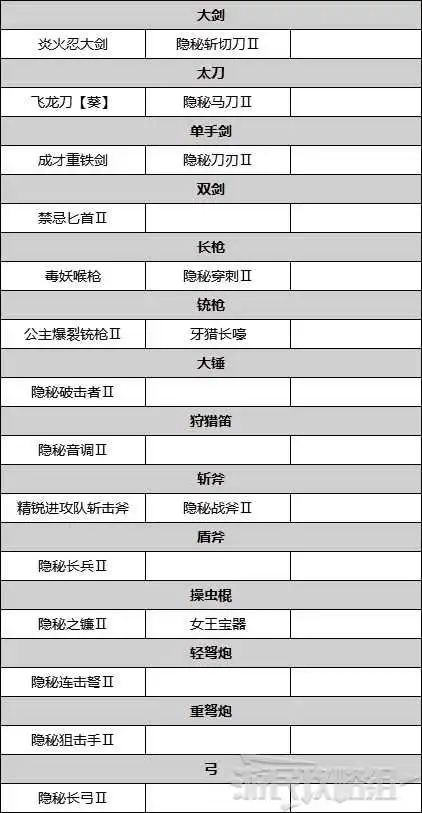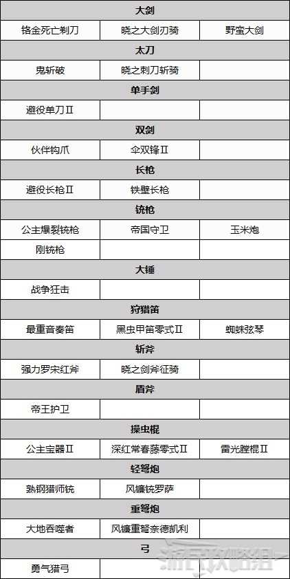 下方为集会所上位★5之前可以制作的推荐武器。