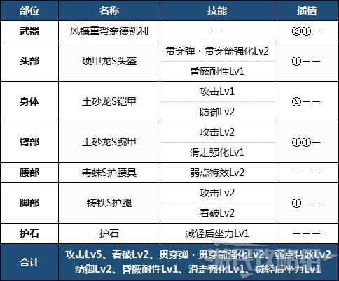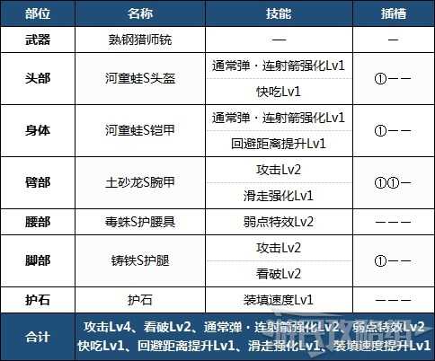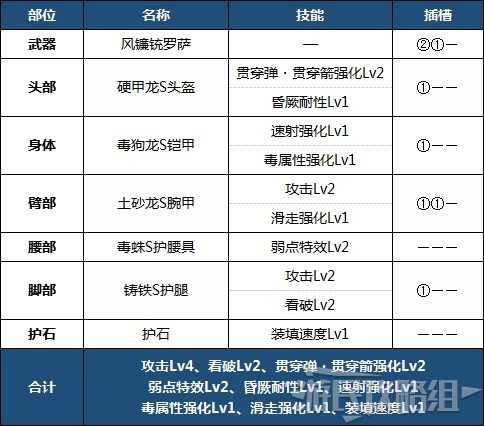 强化了贯穿弹运用的配装。堆了很高的攻击技能等级,大幅度强化了输出。