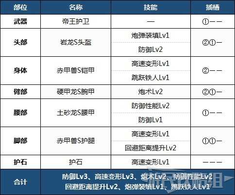 防御性能和防御强化兼备的防御配装。