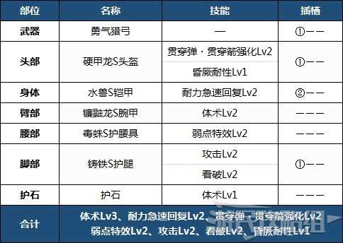 具有攻击、看破、弱点特效的以强化攻击为核心的配装,【集中】有助于蓄力斩的使用。