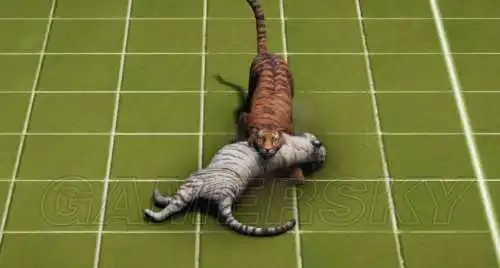 结果就是育碧是个大懒逼,只做了老虎和熊的战斗动画,其他的动物基本都没做,,不过有意思的是当把所有动物都丢进去的时候,会很混乱,一点战斗都没有了