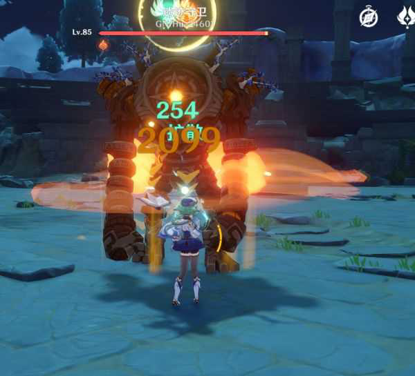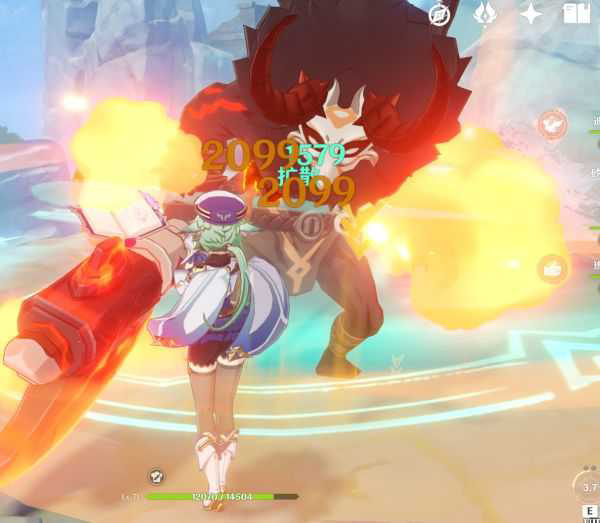 砂糖打别的怪扩散都是只有一次伤害(我的是2099),但是打这个火斧丘丘人,可以一次出俩伤害,且打之前与输出中不用挂元素。