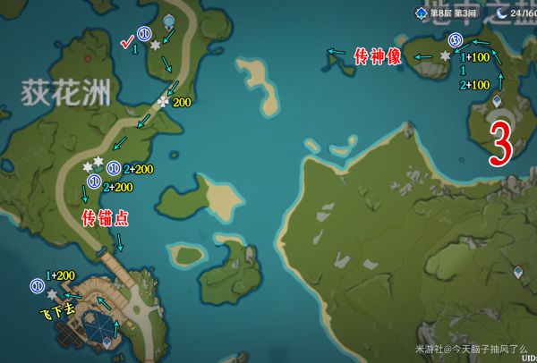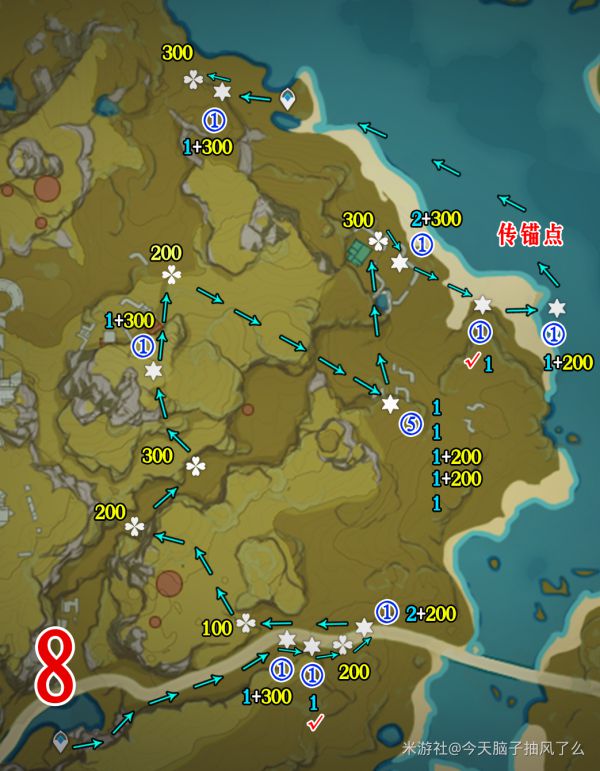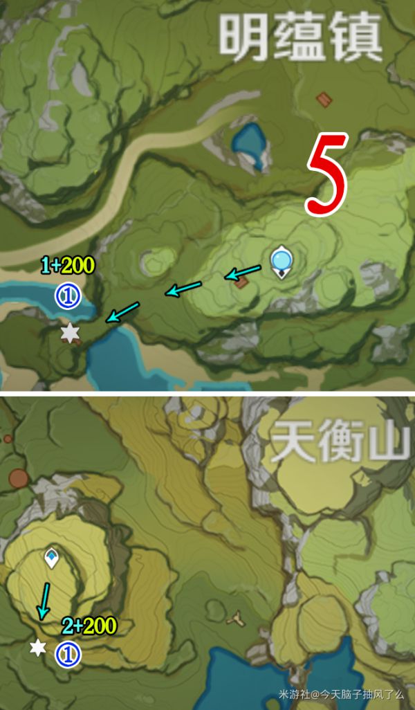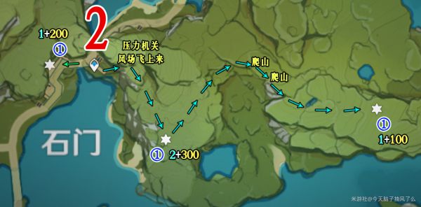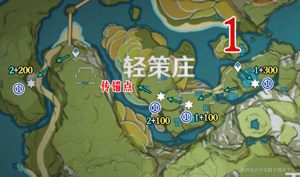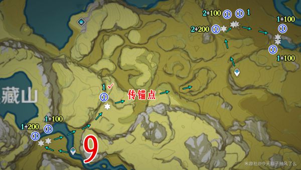 六角星是圣遗物点,随机出1-2个圣遗物 100-300摩拉。