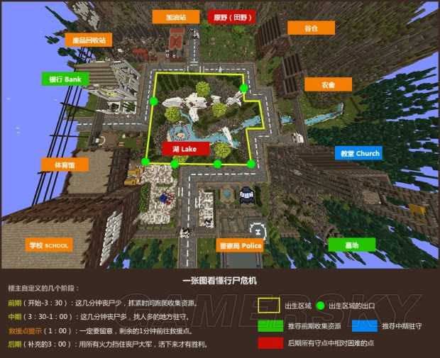 常规时间3:30后,丧尸开始变多且集中,你需要队友。教堂是中期人们比较喜欢呆的地方,因为有上帝保佑啊。(呸!又来)因为视野开阔,有两个门限制丧尸的走位,有高台可以布置防线,而且周边的箱子(墓地)也比较好收集补充。