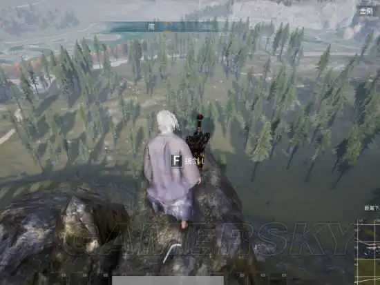 此处走到悬崖边按F拔剑就可以获得游戏当中伤害最高的武器了。注意游戏目前有BUG,最好脱掉身上的所有武器,不然武器拔出会消失,本宝宝有亲生体验~(小心不要被人阴哦)