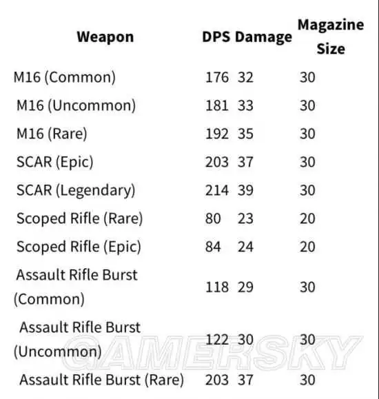 各武器伤害图: