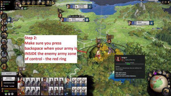 首先熟悉一个操作:在大地图指挥部队移动时,按下退格键(backspace),部队会立刻停止移动。