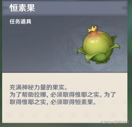 拾取道具【恒素果】,对话完成,【梦中的苗圃】-新芽迸发的曲调 任务结束。