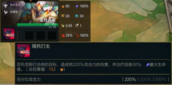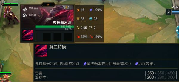 亚托克斯解读:剑魔定位前排续航输出,面板属性在前排输出中中上。技能上单伤并吸血,在无羁绊加成下伤害略低,回血较低。PBE前几天出现过6光剑魔,但只是转瞬即逝,主要是秒人较慢,技能无控制,且比较怕被控。