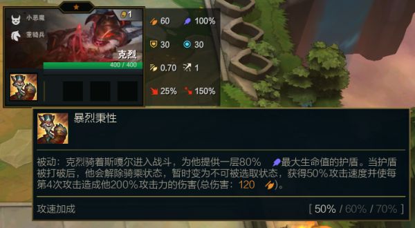 羁绊上小恶魔中增加攻速搭配技能攻速克列攻速超高,7小恶魔下裸装最高攻速为1.96,2秒多就能触发1次双倍伤害。重骑羁绊对克列来说收益不错,2羁绊下就能减伤15%,但克列最大的不足就是双倍伤害与增加攻速只能护盾结束后生效,而没用护盾后3星的血量才1296,很容易被不明AOE灭杀。