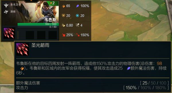羁绊上游侠羁绊对韦鲁斯收益超高。自身攻速0.8,在4游侠下裸装攻速最高1.76,搭配技能的额外魔法伤害输出非常高。另一个羁绊提升护甲对后排游戏来说收益不算太高,而增加法强由于额外伤害略低收益不高。