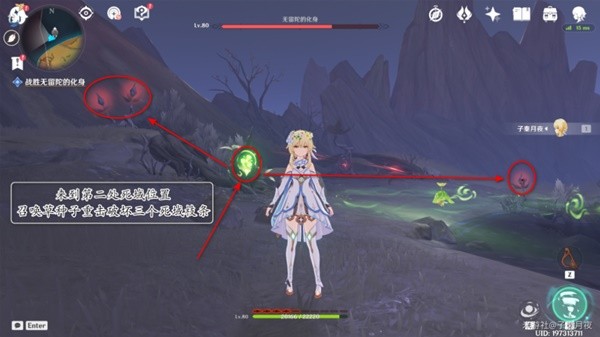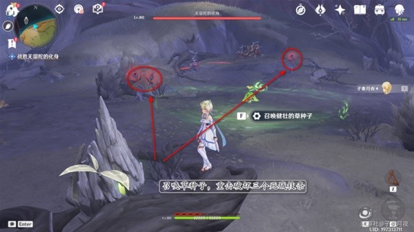 5.召唤草种子,先重击(长按攻击键)破坏三个死域枝条。