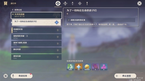 1.任务[为了过去的孩子们]完成,自动接取下一个任务[为了一切向往生命的孩子们]。