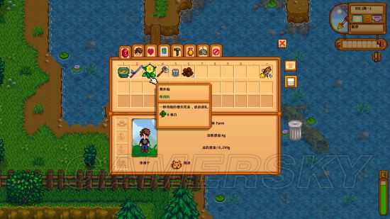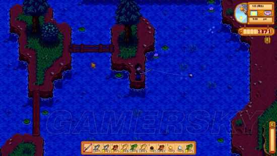 首先周一,看到第二天下雨,直接买了最贵的吊杆,然后钓鱼冲级别。顺便买了一个鱼汤和一个减速鱼钩准备第二天用来掉鱼王。