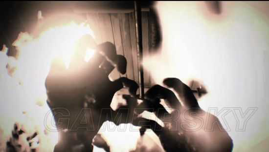 此时克兰西双手被束缚坐在椅子上,地上一旁的彼得醒来立刻找刀子绑克兰西割绳子,但同时被从身后偷偷接近的变异女人(即游戏正篇的女主米娅,从衣服可看出)捅死,克兰斯也被突脸后录像没有了图像信号。