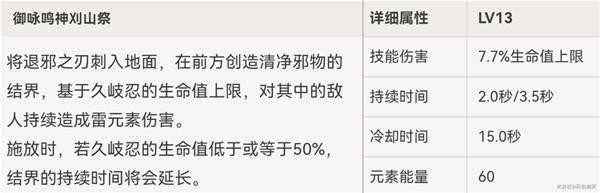 施放时如果久岐忍生命值低于或等于50%时,将延长时间。(有大招无敌帧)