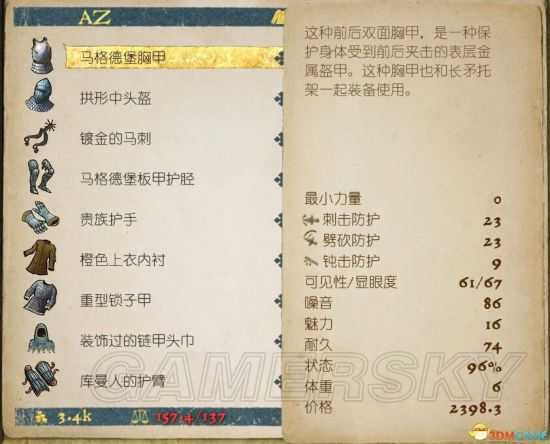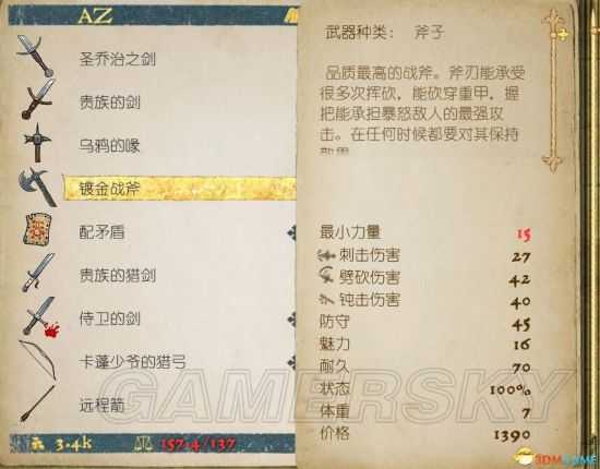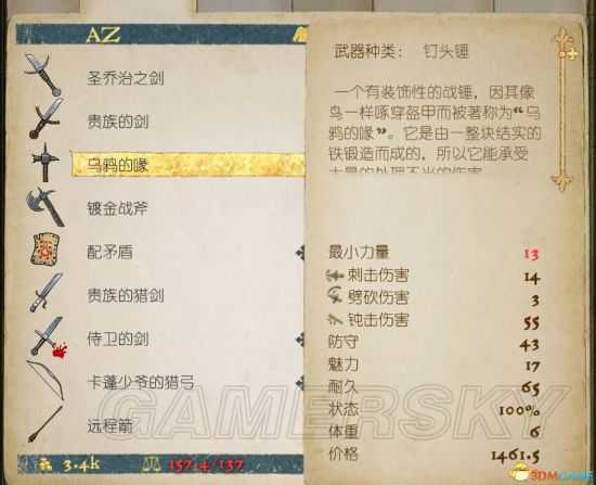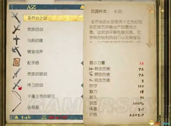 武器装备属性如下: