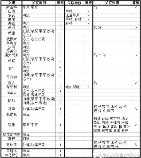 一个文明的出生地关联优劣也是评判这个文明强度的重要参考指标之一。判断关联优劣势的标准,主要就是关联对象的产出,以及淡水资源。