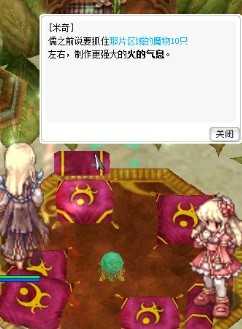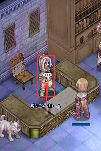 与左边的助理(儒)对话,他会要求你从中邪的魔物身上收集翡翠水晶×1和大钸镭碎片×1,并借给你魔力石A和魔力石B。然后与左上的助理对话,便可离开。