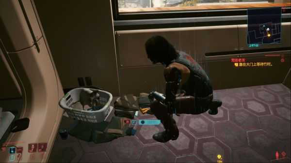 如图位置有一个NCPD任务(有组织犯罪活动,蓝色骷髅头图标),过去以后是个夜游鬼的小帐篷营地,有一顶帐篷里面有猫粮可以捡,是喂猫用的,别直接R下肚了。