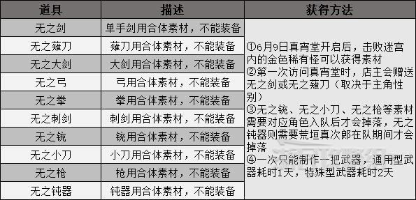 初始素材(无之XX)和特定面具合成后会生成特殊型武器,且不能再次制作。