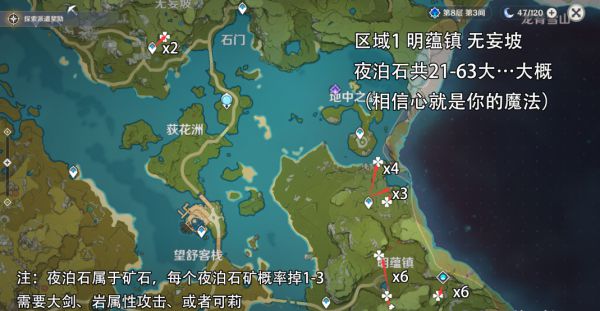 在《原神》这款游戏中,玩家可以在地图上找到很多的资源,矿石资源就是其中一种,有小伙伴碰到了任务需要夜泊石,但是不知道夜泊石在哪里,下面给大家带来由“松gege”分享的《原神》夜泊石采集路线及刷新时间,希望能帮助到大家。