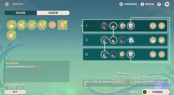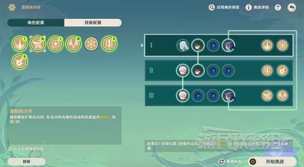 ※注意下方配队第四位在第一队和第三队是连锁的,在第三位空置的情况下放置第四位的顺序可以参考这里:第一队123位分别加入珐露珊、魈、万叶,然后在第四位加入莱依拉,再选择第二队在第1位放入万叶即可。