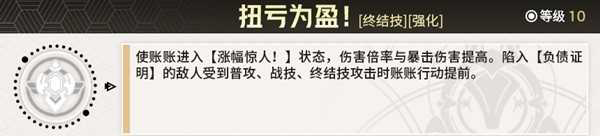 在账账的回合内,追加攻击命中被标记敌人,并不能触发账账行动提前。