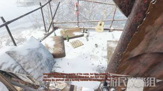 也可以注意搜刮一下塔内其他地方的资源,然后在平台的栅栏处可以看到吉他。