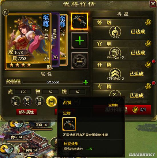 每个武将都有自己的专属装备,佩戴专属装备后可以获得额外的属性加成。