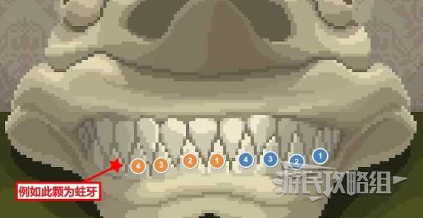 II.>如果此时剩余的牙齿数量不是4的倍数,则算出与它最近的4的倍数差几颗牙,然后选择按所示数量的牙,使剩余牙齿数量变为4的倍数。例如:如果与蛀牙之间剩余13颗牙,那么就选择按1颗,将剩余的牙齿数量变为12;如果与蛀牙之间有19颗牙需要按,那么就选择按3颗,将剩余的牙齿数量变为16,以此类推。