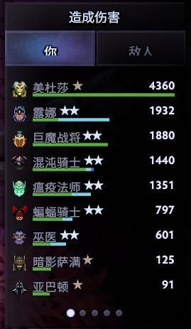 法师在这个时段也可以说是完全不怕,因为有巫医弹弹乐的存在,可以完美克制光法、影魔这类需要抬手动作的棋子,26波上9可以小搜2~3回合,补足美杜莎以及NEC,哪怕是1星美杜莎输出也是露娜以及蘸酱不能比拟的,下面是伤害图。