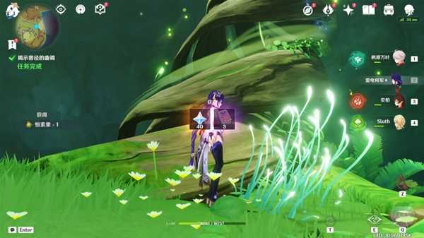使用草元素攻击众叶觉蕊散布四叶印飞上去