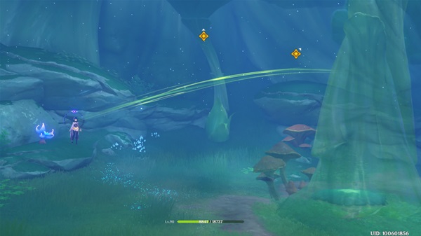 通过弹弹菇跳至二层即可见到第二个「原始松脂」(附近有蕈兽保护的珍贵的宝箱记得拿)