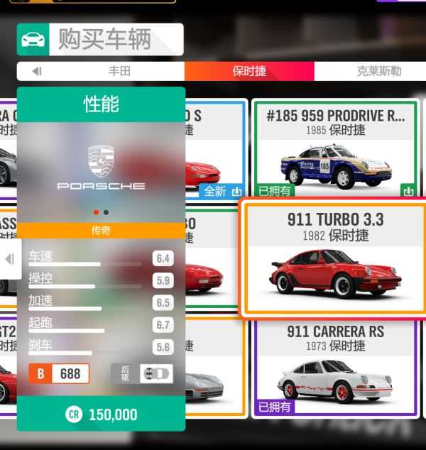 首先我们去车展找到这辆金色品质的保时捷,车展售价为15万,买下它,打开他的车辆熟练度,如图所示,看见左上角那个技能点了没有?