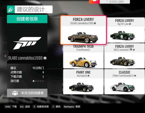 调教方面,新人(指没玩过竞速游戏,不了解车辆原理,手柄无法很好的控制油门刹车或键盘玩家)可以找一找其他大佬调教,DJS等,具体可以看贴吧推荐帖,可以关注他们以后别的车找调教会优先弹出他们的,新人不建议一上来超跑拉满,反倒练习不了技术,可以从A级别的车开始