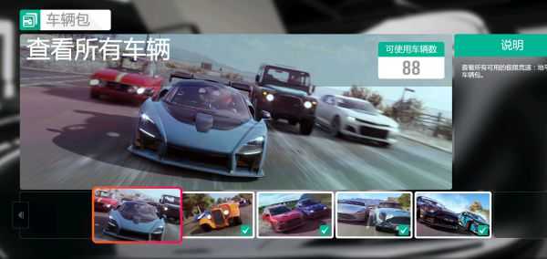 关于车辆,不是所有的车都能在商店买,包括地平线故事奖励车,星等奖励,季节赛奖励车,马拉松商店车以及抽奖车等。但是几乎所有车你都可以去拍卖行找到(某些预购车无法上架),值得一提的事有些车包车如果你没有车包是无法购买拍卖的。