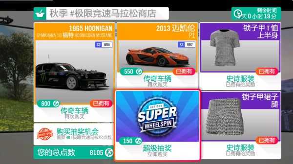 关于极限竞速马拉松商店:商店每周都会刷新,会出售不同的东西,大多时候是两辆车加两件衣服/表情/喇叭,有时候是稀有车,有时候是车展卖的车,可以用马拉松点数换取