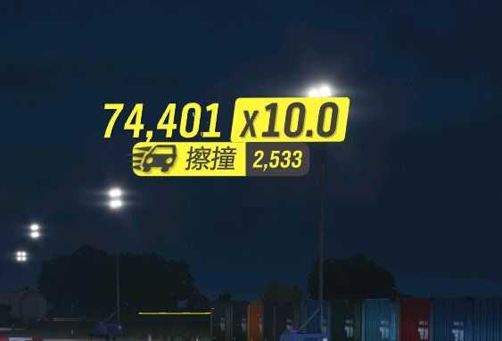 还有一个小技巧就是我们可以在在倒计时结束前提前结算,然后再开始下一轮,这样就算你的歌曲结束了,十倍的效果还在(如图,技术歌曲结束了,但是我还有十倍加成)。然后就是怎么操作分数长得快?多触发擦撞(漂移时撞护栏就可以。这辆车的擦撞有2500分,非常多)美化环境(撞木头护栏铁丝网),终极漂移(1900分),还有终极连续技术