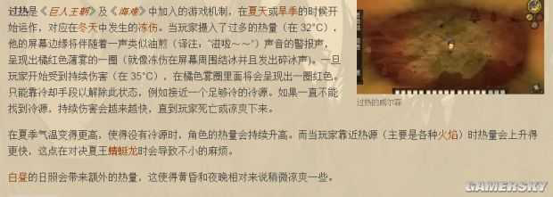 饥荒温度机制是在冬天由于环境温度寒冷,会快速降温,低到5°会开始感到寒冷(巨兽统治10°),0°开掉血,在夏天则是32°过热,35°掉血,(巨人国中更高)