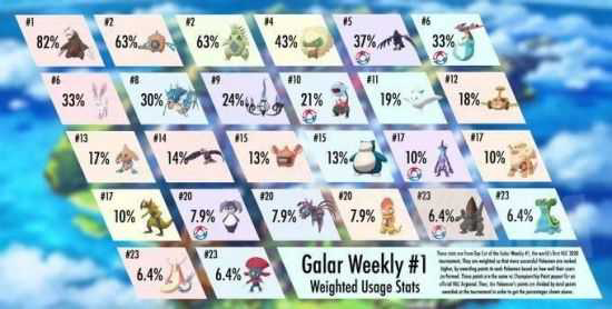 VGC是宝可梦的世界锦标赛,本次的《宝可梦剑盾》也开始了比赛,那么排名靠前的选手都在用什么阵容呢,下面就为大家带来玩家“吴有人”分享的《宝可梦剑盾》VGC双打宝可梦使用率排名,希望对大家有用。