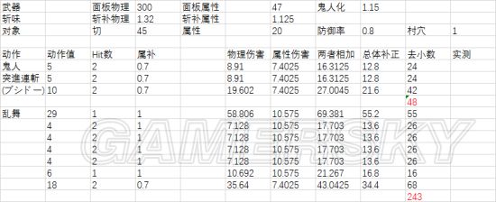 细心的人应该已经发现了,在不算任何技能的情况下,主物理的火双造成的伤害是低于主属性的,原因就在于选择的目标是45肉质,20吸收,如果是鏖魔头57的肉质15的水吸收呢?如果是白疾风脑袋,怒前40肉质25吸收,怒后55肉质30吸收呢?所以我们配技能时候要怎么倾向呢?