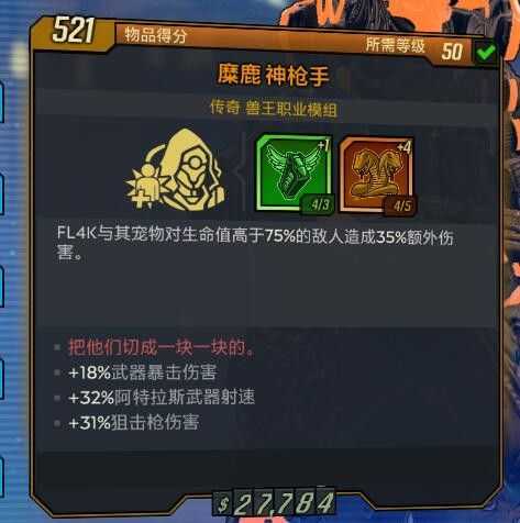 神枪手模组自带百分之35额外伤害,可以刷出狙击伤害暴击伤害等词条。
